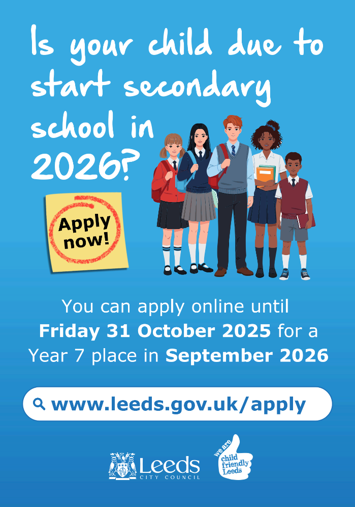 We are part of the Coordinated Admissions Scheme for schools in Leeds. Click the links below to find out more