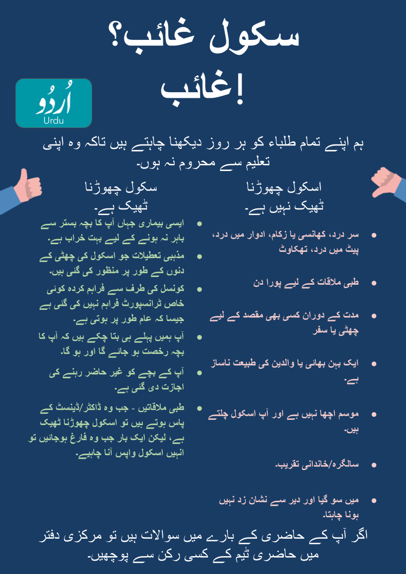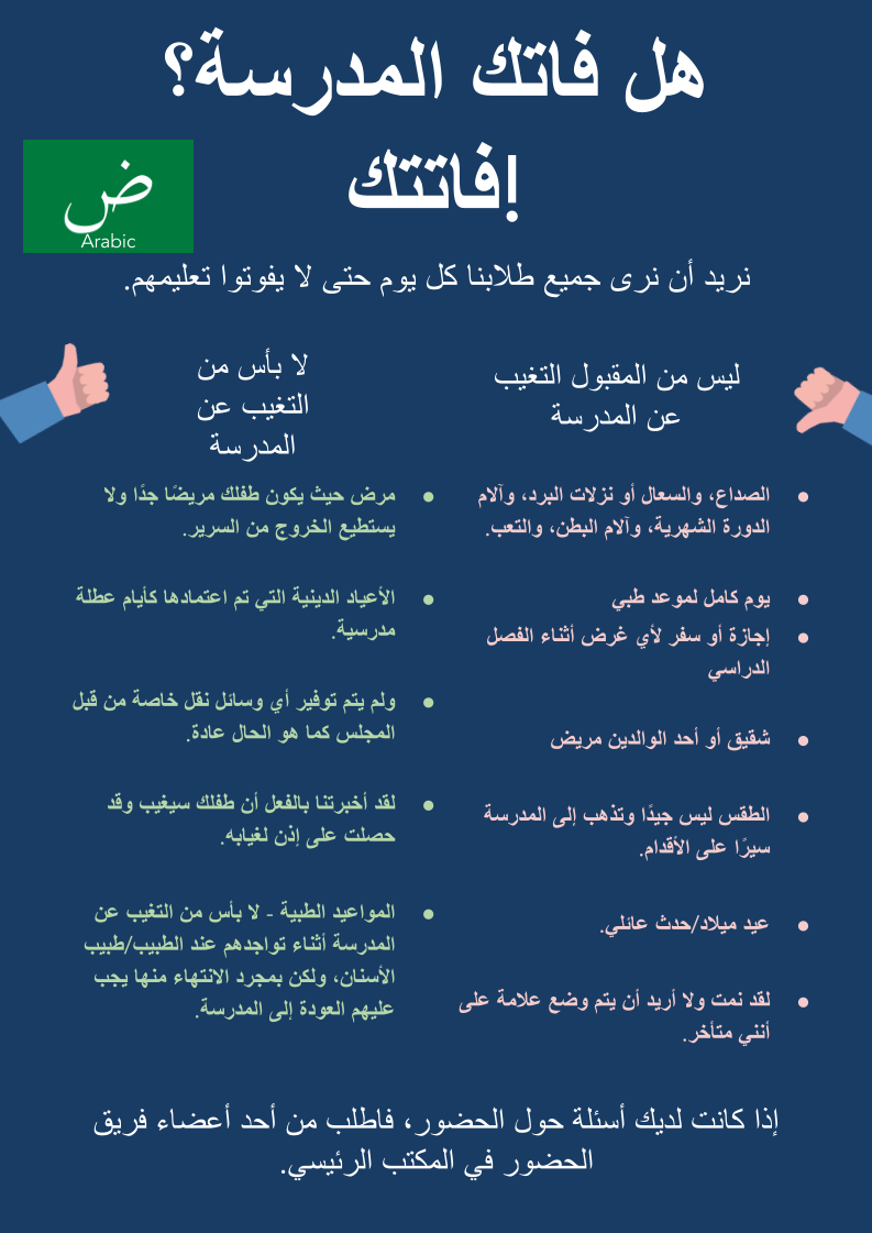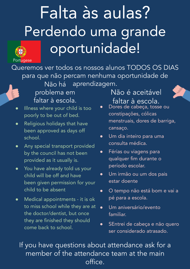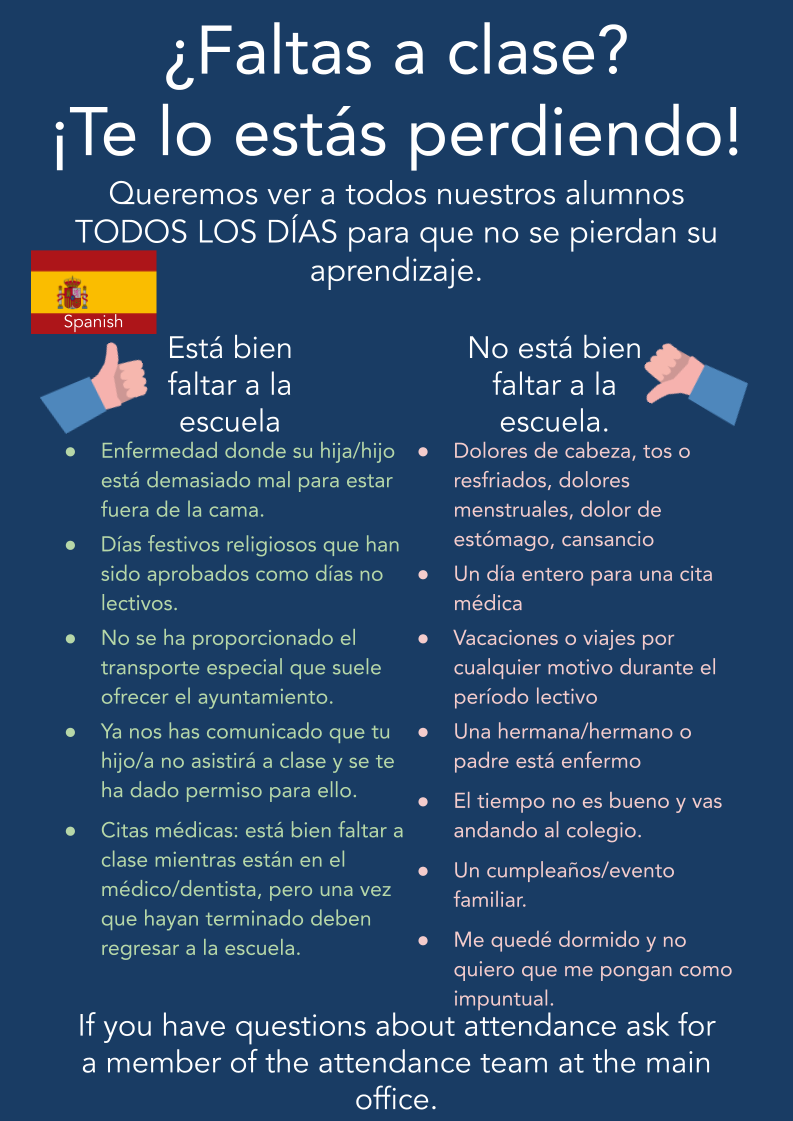 If you have questions about attendance ask for a member of the attendance team at the main office.