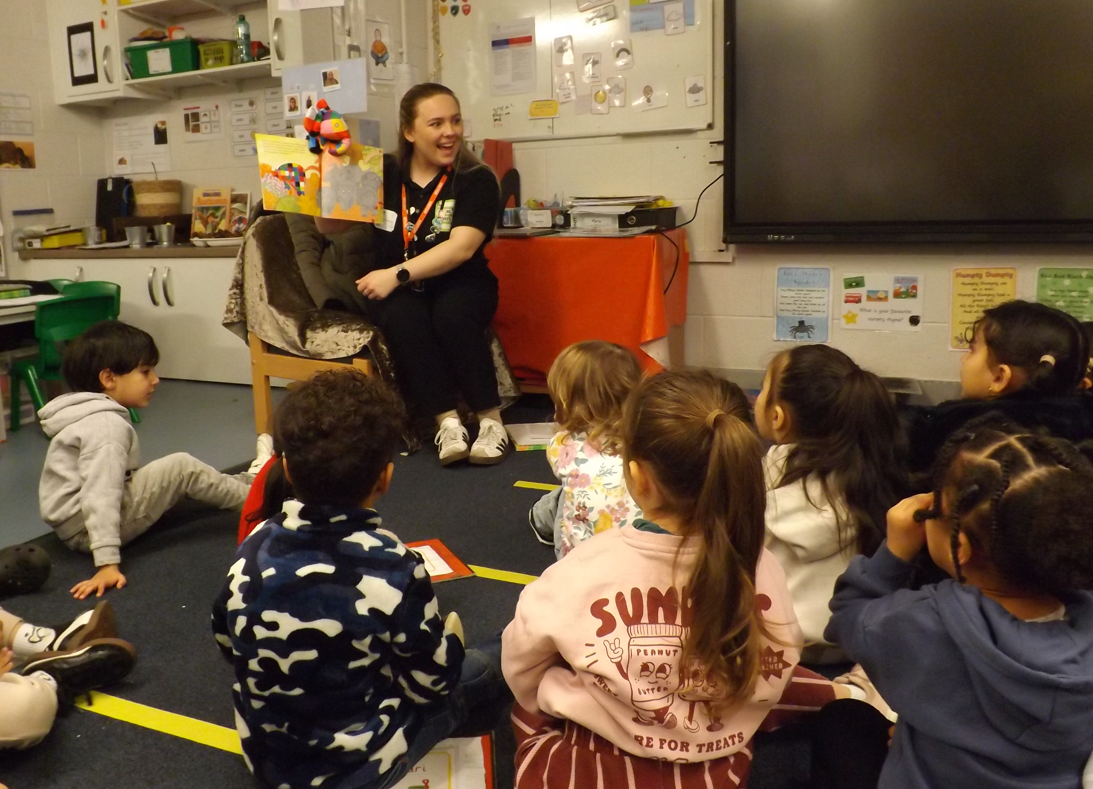 Following the parent meeting, Courtney joined our Nursery and Reception children for an interactive session introducing the Little Feet: Elmer challenge. Using the beloved character Elmer the Elephant, the project encourages children to track their active journeys to school, earning rewards along the way.